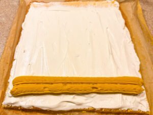 冷ました生地に生クリームとカスタードクリームを塗って✨