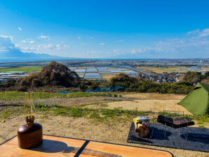 今回は、草枕山荘キャンプ場の絶景エリアへ!