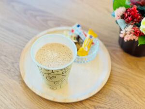 そして皆さまにも、この癒やしの時間をぜひお裾分けしたいと思い、事務所のホットドリンクに新メニューを追加させていただきました!✨
